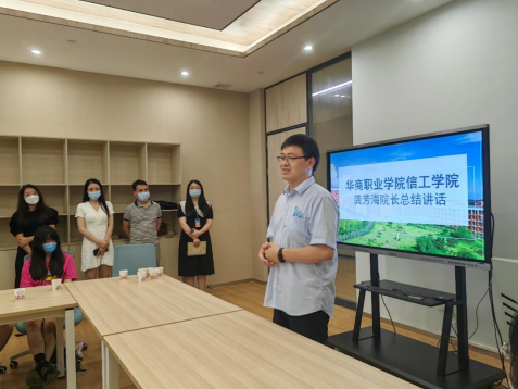 最后由信息工程学院龚芳海院长进行总结讲话,龚芳海院长表示本次项目能够顺利完成离不开每个人,尤其是广州凡岛网络科技有限公司在最快的时间为大家提供设备等资源,给同学们提供更加精准的平台,希望同学们继续保持一如既往的态度和理念继续努力,为提升职场竞争力获得职场经验和机会做积累。
