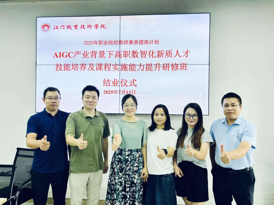 近日,由广东省教育厅主办、江门职业技术学院与广东轩辕网络科技股份有限公司联合承办的2025年职业院校教师素质提高计划项目——“AIGC产业背景下高职数智化新质人才技能培养及课程实施能力提升”培训班圆满结束。本次培训于2025年6月30日至7月13日在江门职业技术学院顺利举行,我校教师刘梦婷老师、吕观凤老师和王曼老师参加了此次培训,系统学习了AIGC产业背景下高职数智化新质人才技能培养及课程实施能力提升的实践方法。