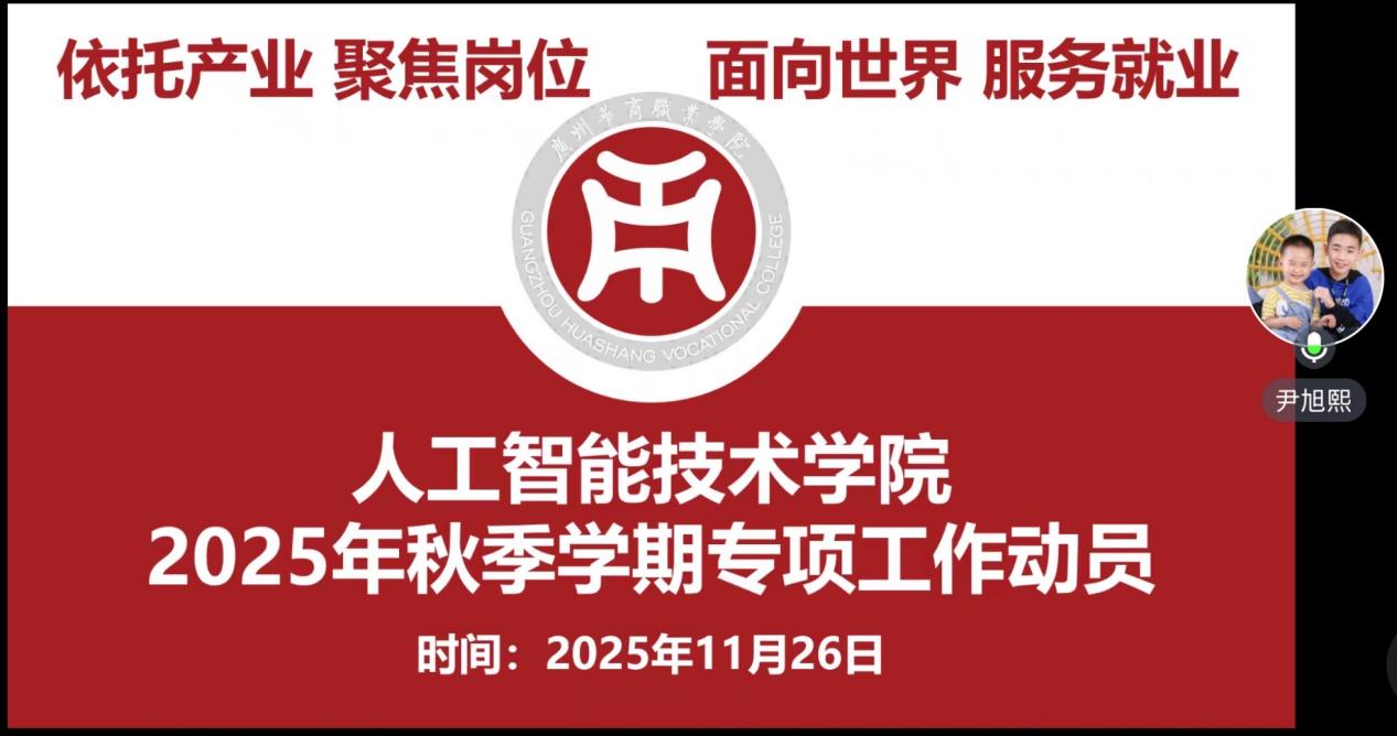为扎实推进学期末各项重点工作,确保2023级毕业生顶岗实习、毕业设计及期末考试等工作有序开展,人工智能技术学院于近日组织召开了2025年秋季学期专项工作动员会议。学院领导、各专业负责人及全体教师参加了本次会议。