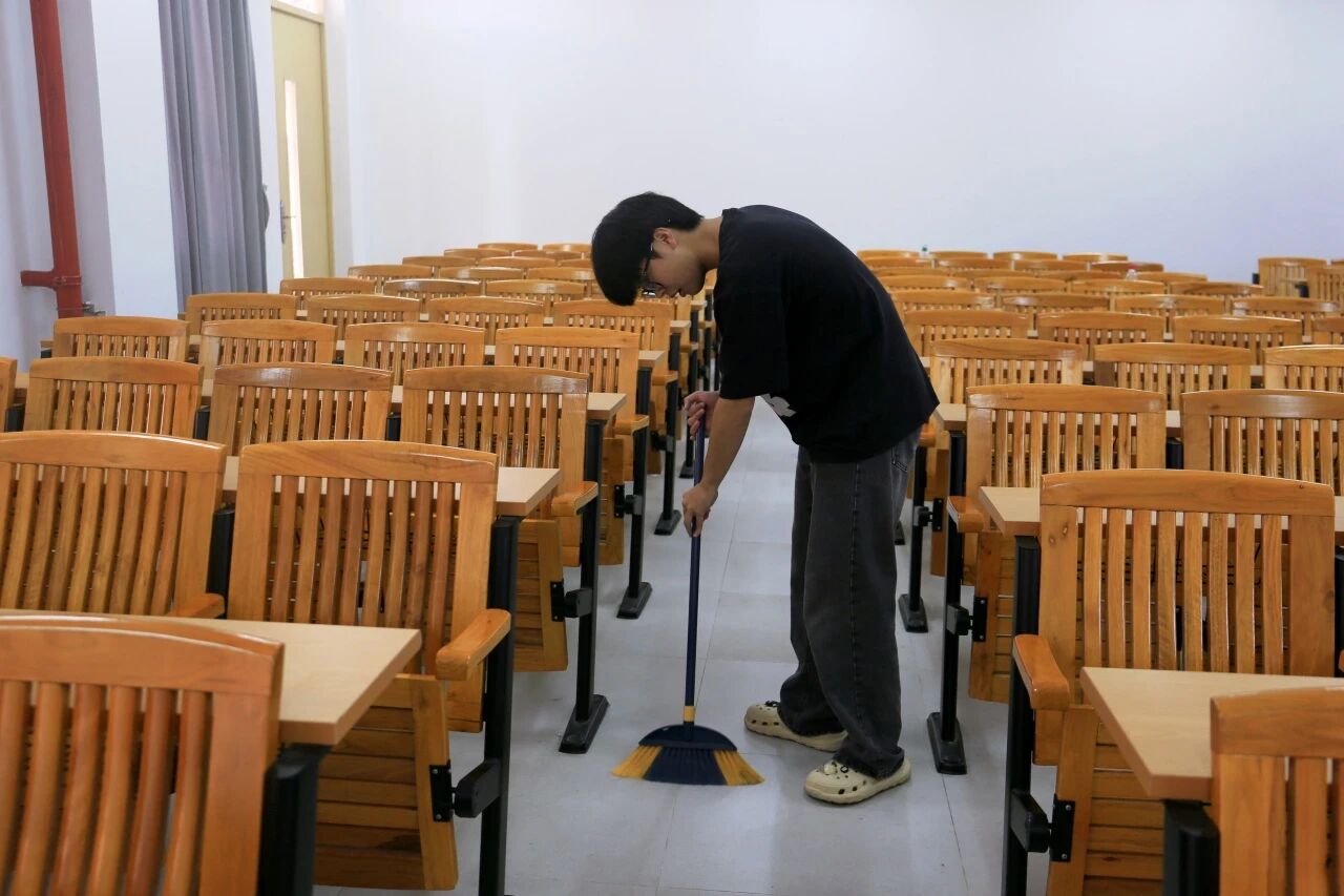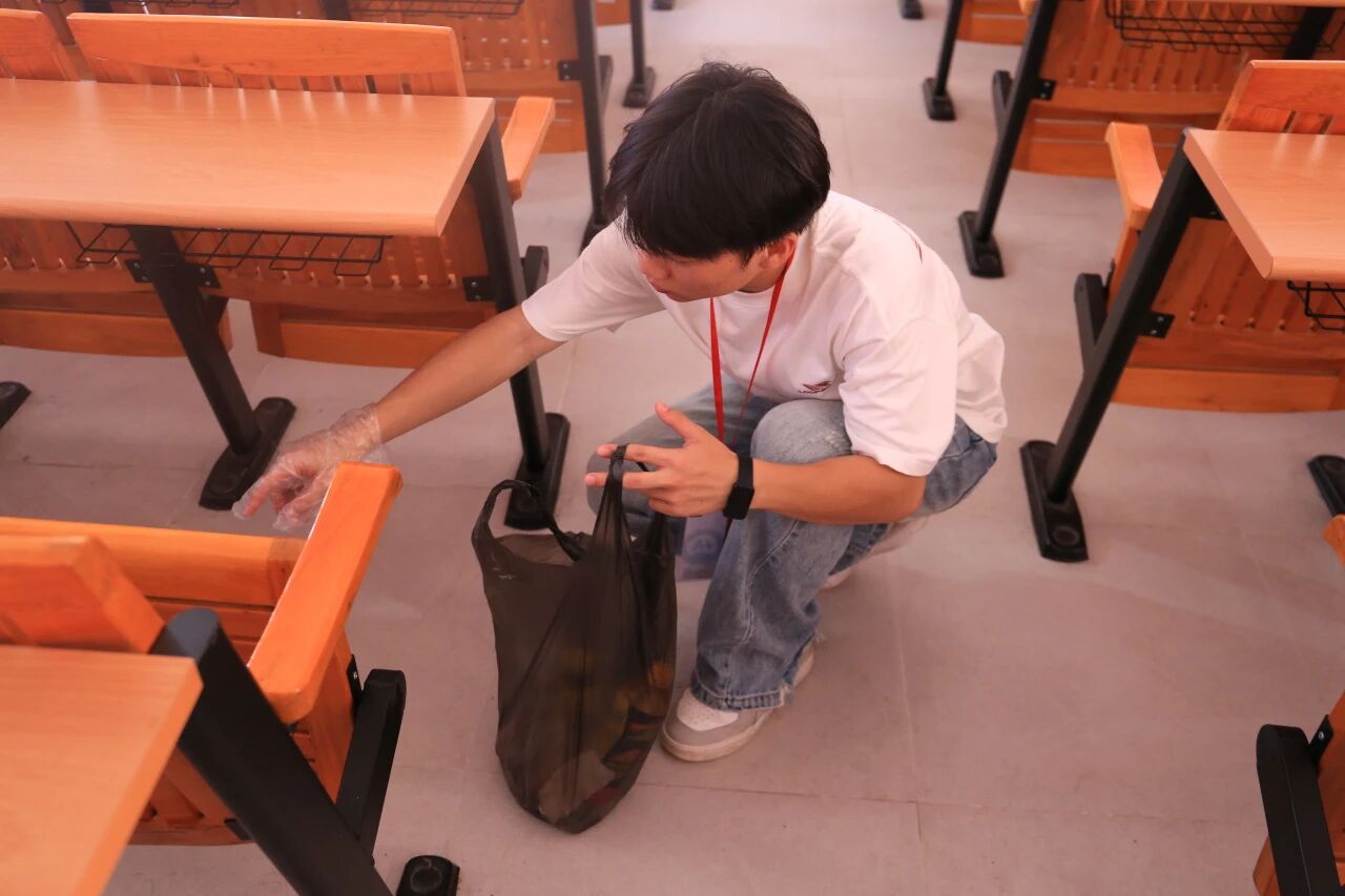 活动中,大家分工协作、密切配合,对二号楼四层和五层的课室开展集中清扫。清理桌椅、擦拭黑板、扫除垃圾、整理物品……每一处细节都体现了大家的责任与担当。