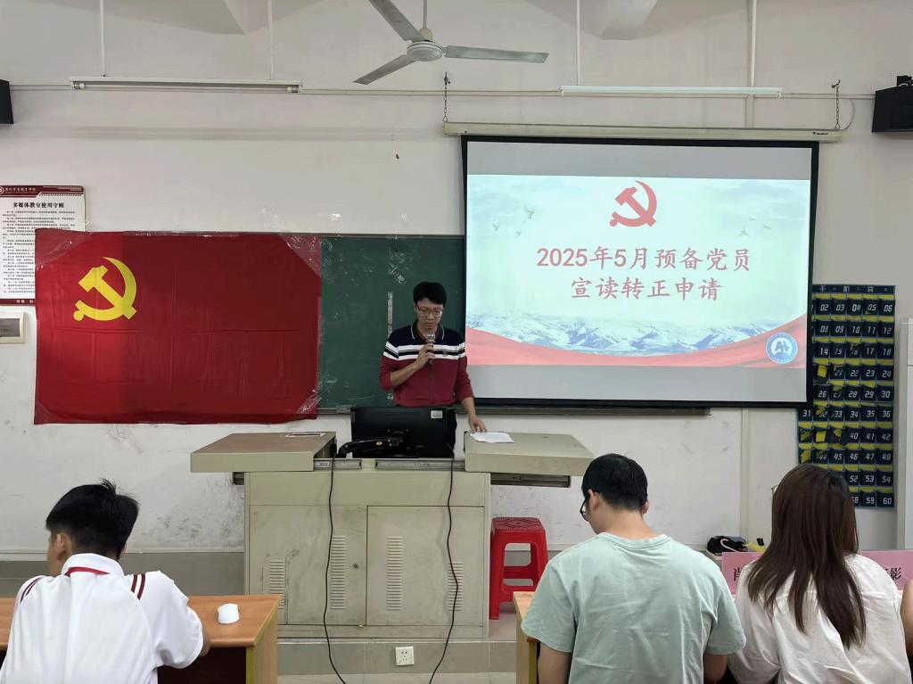 为进一步加强基层党组织建设,增强党组织的凝聚力与战斗力,永利yl23411官网教师党支部于2025年5月30日中午在博学楼B406召开转正大会。参与此次会议的人员有教师党支部书记尹旭熙同志、组织委员生沙沙同志、宣传委员肖健南同志及全体教师党员。 会上,预备党员王道宽同志上台宣读转正申请书,接着,入党介绍人依次对王道宽同志的预备期表现发表转正审查意见。随后,在场的正式党员通过无记名投票的方式对预备党员进行投票。选票经过工作人员的收回与统票后,经党支部集体讨论,决定同意预备党员王道宽同志如期转为中共正式党员。 尹旭熙同志总结指出,转正既是荣誉更是责任,身份的转变意味着更高的标准、更重的使命。作为新时代高校教师党员,要始终牢记为党育人、为国育才的初心使命,不断加强思想政治建设,在教书育人的征程中践行对党的忠诚。 通过此次会议,进一步规范了党组织发展党员工作流程,希望全体党员同志始终保持党员的先进性和纯洁性,将初心使命内化于心、外化于行,在教育教学岗位上勇挑重担、砥砺前行,为学院高质量发展、为培养德智体美劳全面发展的社会主义建设者和接班人、为实现中华民族伟大复兴的中国梦贡献坚实的教育力量。