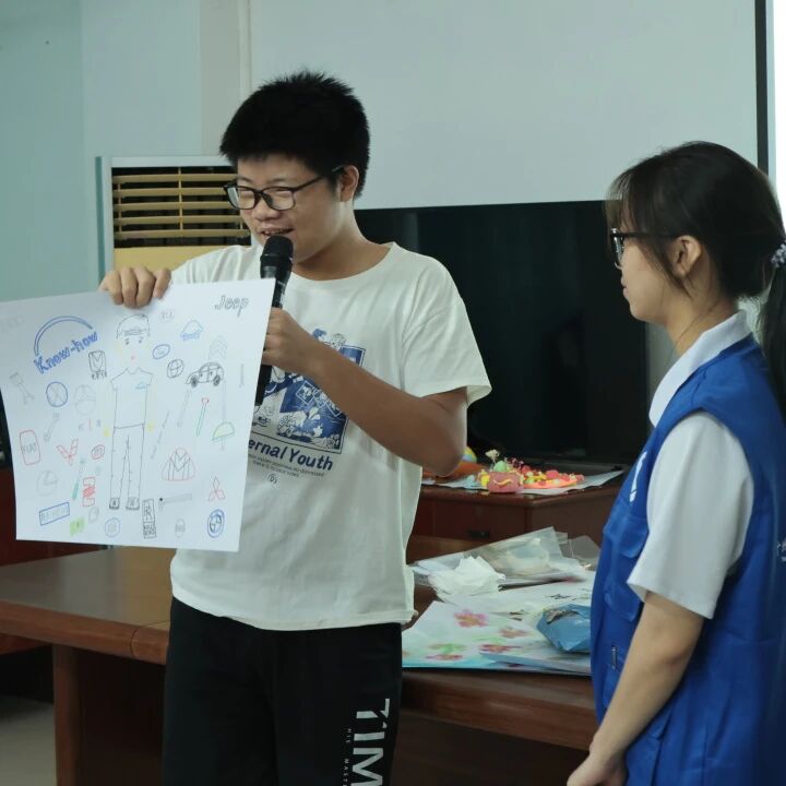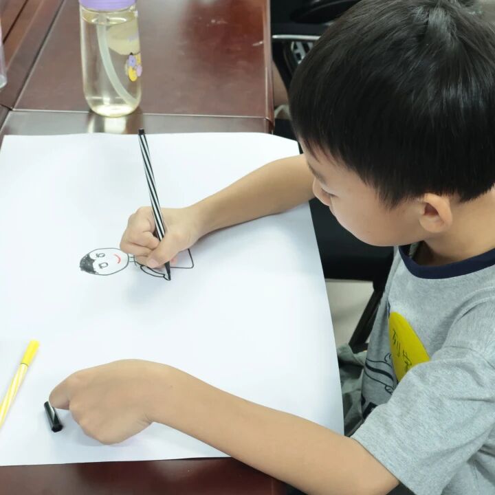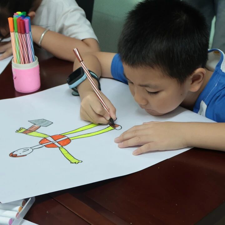 “绘制未来的自己” 环节里,孩子们拿起画笔勾勒心中模样:有的画着开战斗机的飞行员,有的画着摆满零食的小卖部老板,轮廓里藏着对成长的期待。志愿者们俯身细心指导,彩色墨汁在纸上晕开,每个 “未来的自己” 都鲜活明亮,这是想象力在童心最自然的流淌。