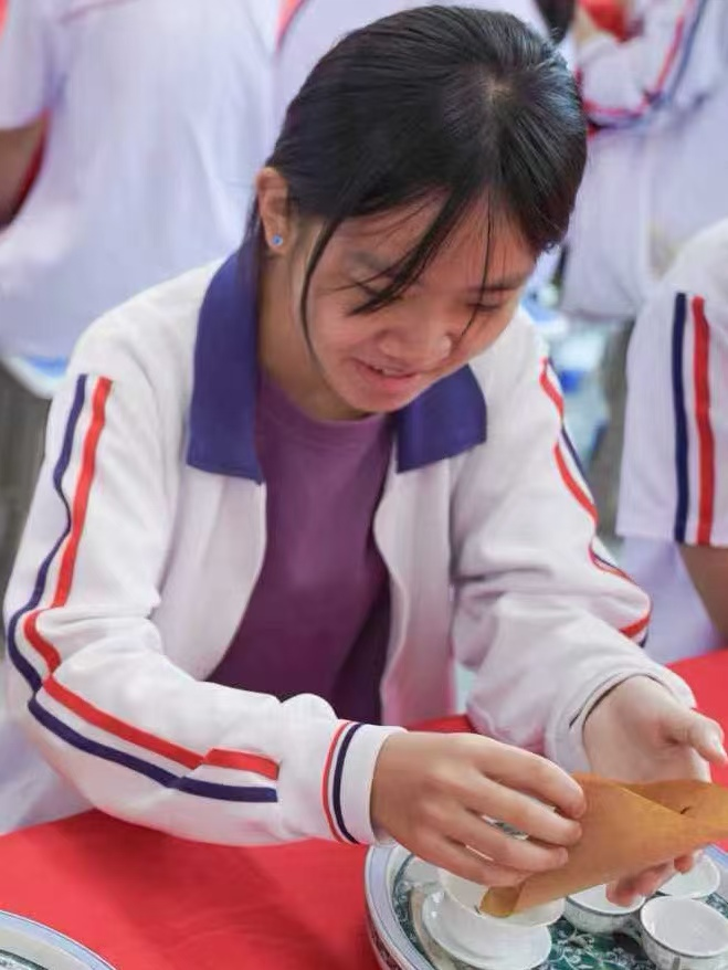 此次“茶文化进校园”活动,是永利yl23411官网“枞启未来”百千万工程突击队积极响应号召、发挥专业特长、服务地方发展的生动实践。通过“品鉴+体验+竞技”的多元形式,突击队员们成功地将凤凰单丛茶这一承载着深厚潮汕文化与生态智慧的瑰宝,以青少年喜闻乐见的方式带进校园。活动不仅让凤凰中学的学子们零距离感受了家乡名茶的魅力,学习了非遗知识,提升了审美情趣和文化自信,更在轻松愉快的氛围中锻炼了观察力、专注力、团队协作能力和实践动手能力。同时,也展现了华商职院学子服务社会、传承文化、助力乡村振兴的青春担当。