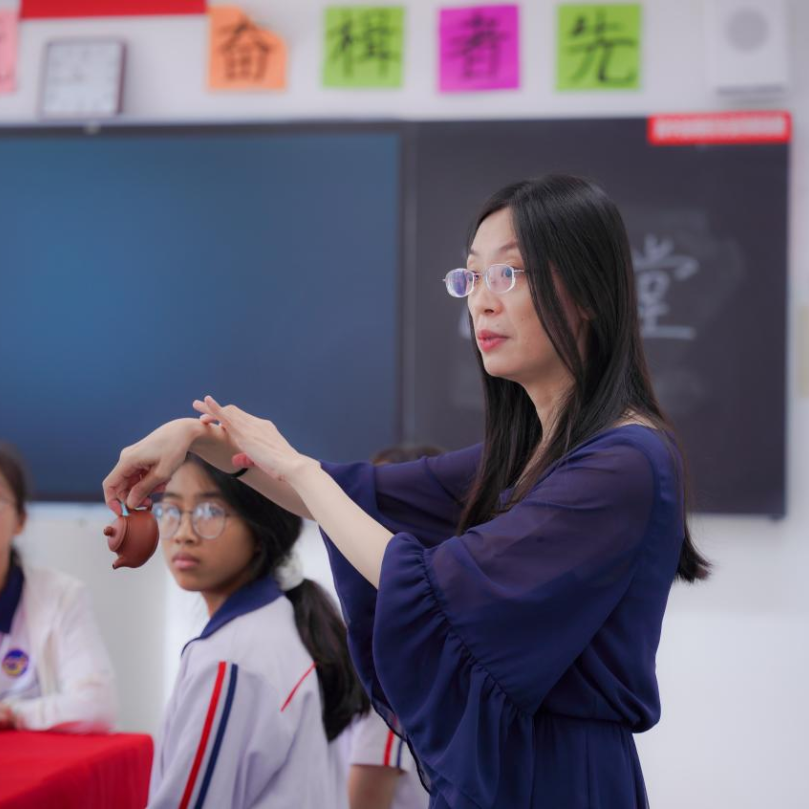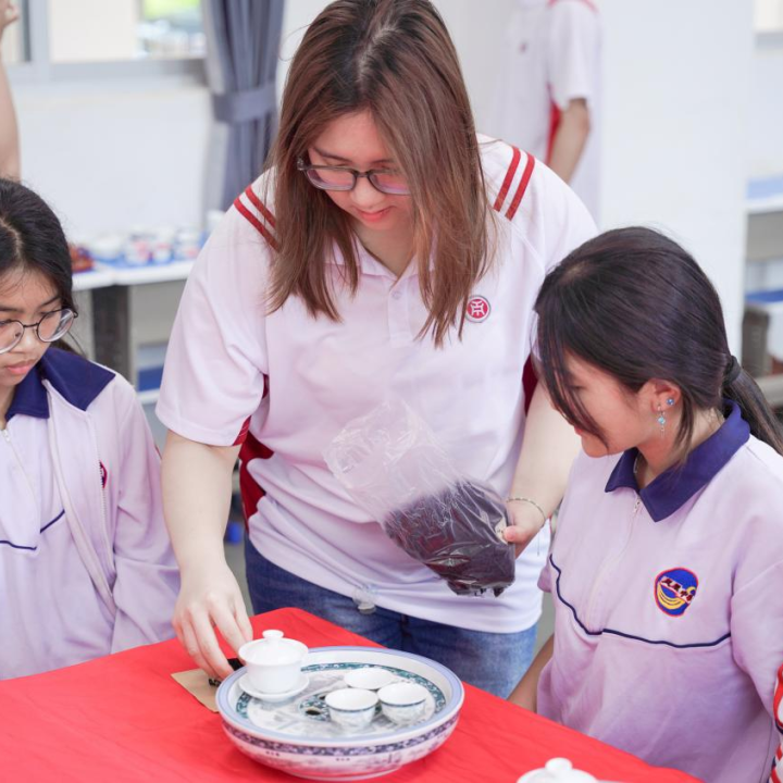国家级茶艺师行云流水般展演21式标准流程:纳茶时的指尖轻拢,候汤时的气定神闲,冲点时的悬壶高冲,刮沫时的利落轻巧,淋罐时的水汽氤氲,烫杯时的玉器相击,洒茶时的观音出海……每一个动作都是对“和敬精乐”工夫茶精神的生动诠释。随后,茶艺师穿行其间,俯身调整执壶角度,指尖示范手腕力道。“手腕放松,心要静下来”——低语指导中,凤凰学子渐入佳境,终在茶烟升腾间,亲手沏出人生第一杯工夫茶。