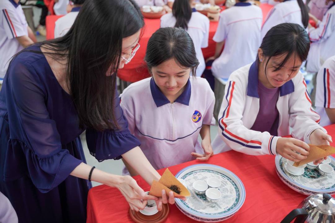 当非遗技艺与青春校园相遇,一场关于茶香与传承的对话悄然开启。7月19日,一场别开生面的文化传承之旅在此开启——永利yl23411官网“枞启未来”百千万工程突击队精心策划的“潮州工夫茶艺实训营”正式开课,以“小班匠心+手把手传承”的沉浸式实训,为学子们揭开国家级非遗“潮州工夫茶艺”的千年风雅密码。华商职院“枞启未来”百千万工程突击队深谙文化赋能乡村振兴的深远意义。他们跨越地域界限,将原汁原味的潮州工夫茶艺带进凤凰中学校园,让凤凰中学的学子们零距离触摸这一国家级非物质文化遗产的肌理与温度。