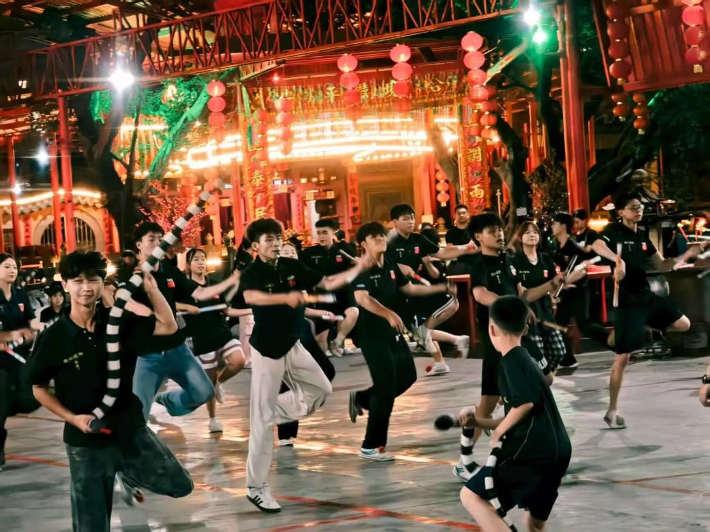 离开时,训练的呐喊仍在耳畔回响。榕義兴基地的一行,让队员们明白:非遗传承从不是博物馆里的标本,而是在日复一日的训练中、在青春力量的接续里,始终跳动的脉搏。这些所见所摄,终将成为唤醒更多人关注英歌的火种,让这份滚烫的文化记忆,在时代里生生不息。