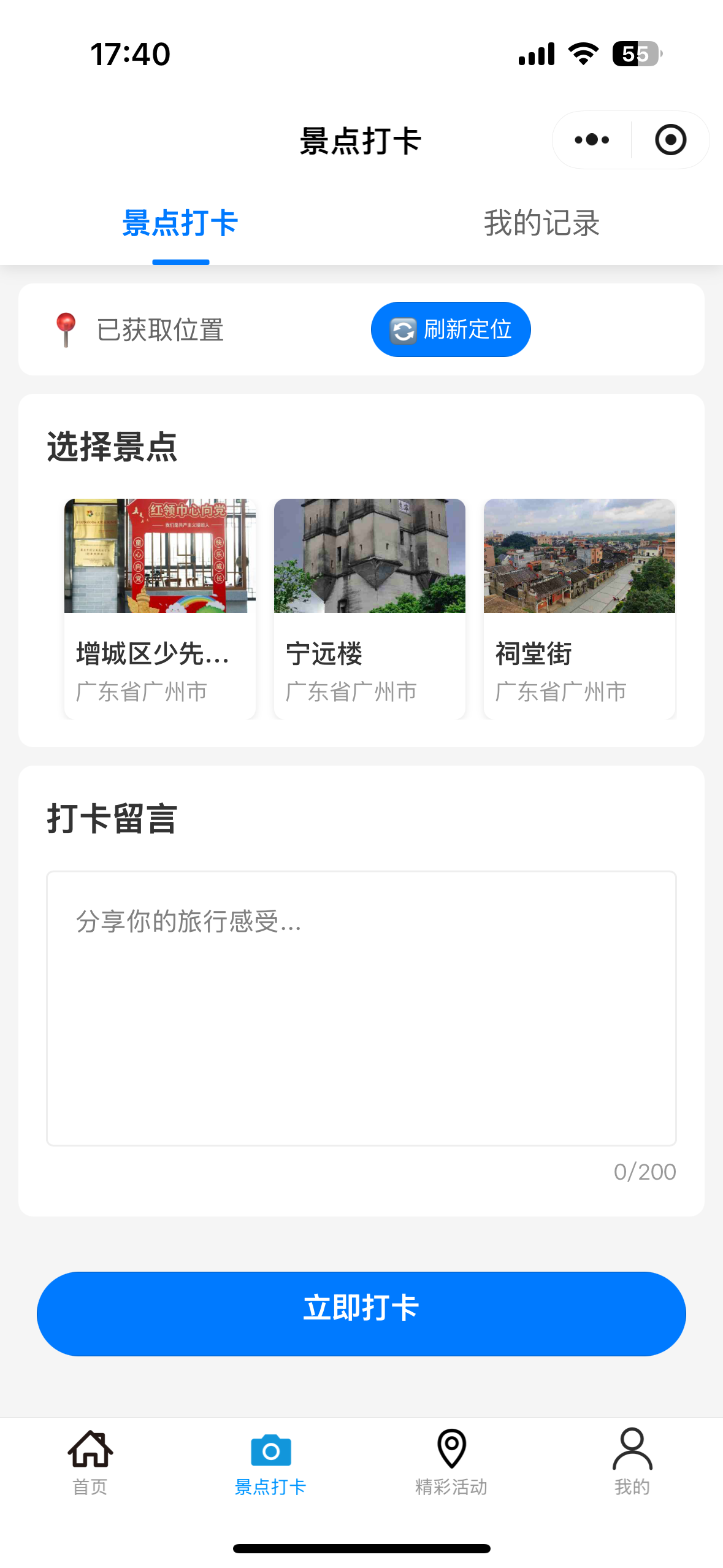 “精准打卡”是用户体验的核心命脉!技术团队将攻克定位难题视为头号战役,创新性地引入“双维度校验”机制:一方面,通过微信小程序wx.getLocation接口实时获取用户位置信息,另一方面,将实地采集的打卡点坐标经腾讯地图API转换为微信兼容的坐标系,通过系统算法完成用户位置与打卡点坐标的精准比对,从技术层面保障打卡操作的稳定性与准确性。