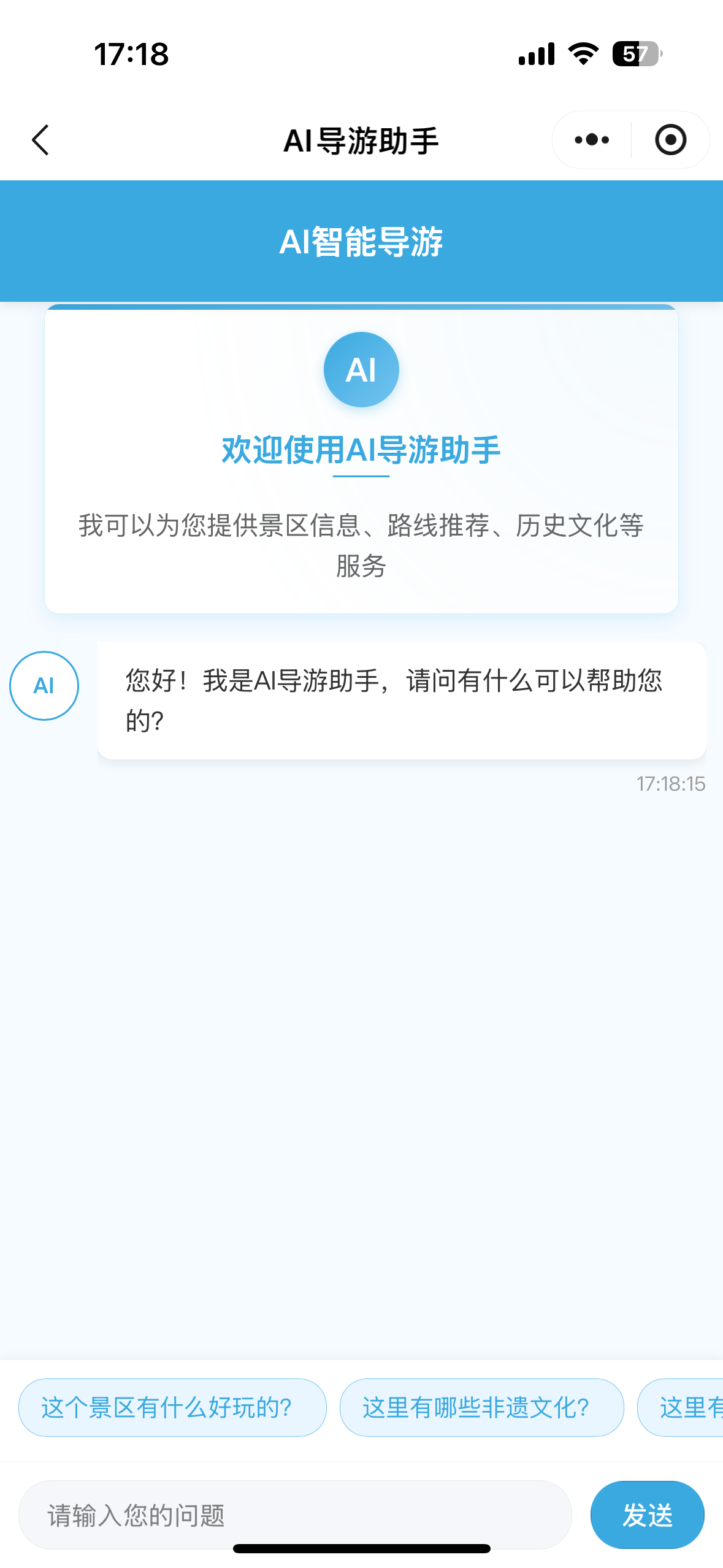 当游客对某一景点抱有好奇,想要探寻其历史渊源、文化故事或独特价值时,可点击“我是景点小助手”功能。不同于一般的问答模式,小程序融入高效的“检索-生成”机制,系统会首先从本地的结构化知识库中精准调取信息;在检索到与你的问题高度相关的内容后,系统会通过精心设计的提示词工程,将这些资料与你的具体问题深度融合,生成贴合需求的增强提示。随后,这份提示将被发送至阿里云的通义千问(Qwen3)大语言模型,由其输出最终的智能导览内容。