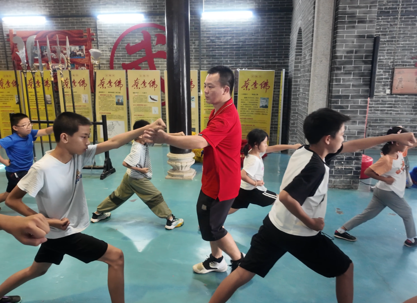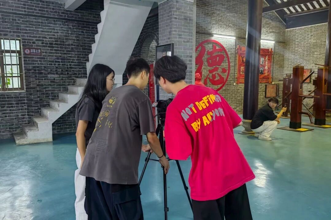 突击队成员们再赴京梅村,在缘福陈公祠拍摄了一组小朋友跟随李杰和师傅学习蔡李佛拳的生动场景,通过多角度专业拍摄记录下传统武术薪火相传的动人画面。随后,突击队与崖门镇副镇长旷刚强、驻村第一书记黄宇光、何俊杰老师在蔡李佛文化陈列馆展开洽谈,交流了宣传科普工作的目标与规划。为深入挖掘武术内涵,成员们在李杰和师傅指导下亲身体验基础招式,沉浸式感受其文化魅力,并以此为基础投入蔡李佛拳墙画招式拆解视频的拍摄工作。通过与李杰和师傅的紧密协作,成员们精准记录了李杰和师傅行云流水的动作、发力细节与动态轨迹,顺利完成素材采集任务,为后期制作高质量数字化宣传科普片奠定了坚实基础。