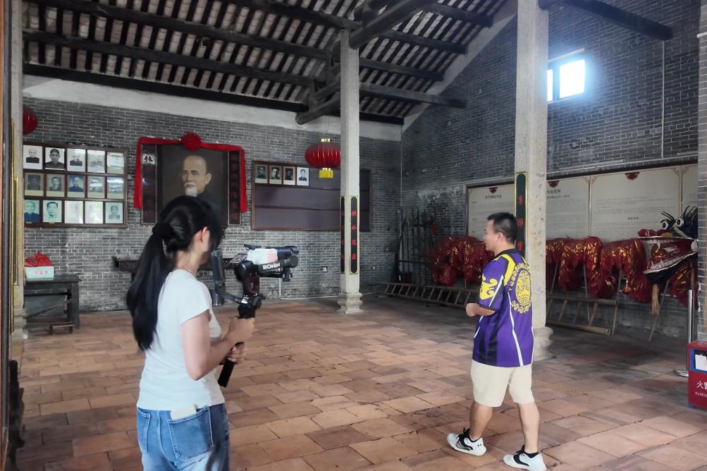 突击队成员们深入“武术之乡”京梅村,携手蔡李佛始祖拳会传承师傅李杰和,通过专题访谈与专业拍摄,挖掘非遗武术文化底蕴,助力“百千万工程”中的乡村文化活化。成员们分工协作:采访组成员围绕蔡李佛文化传承脉络、师傅生涯、乡村保护实践等核心议题,对李杰和师傅进行了深入访谈;拍摄组成员则严格遵循专业标准,调试设备,精准捕捉墙画武术典故与村落文化活力。通过拆解招式细节,记录拳术精髓,成员们以视听语言传递非遗文化的刚健风骨,为乡村文化振兴留下珍贵档案。