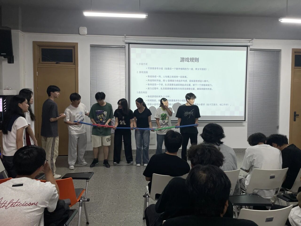讲解结束后,在新生辅导员老师与助班的默契配合与专业引导下,同学们迅速分组,全身心投入到精心设计的各项团辅活动中。活动现场氛围热烈高涨,从思维碰撞的协作任务到暖心互动的分享环节,同学们积极参与、主动交流,彼此间的距离在欢声笑语中不断拉近,整个场地处处洋溢着温暖的集体归属感与情感共鸣。