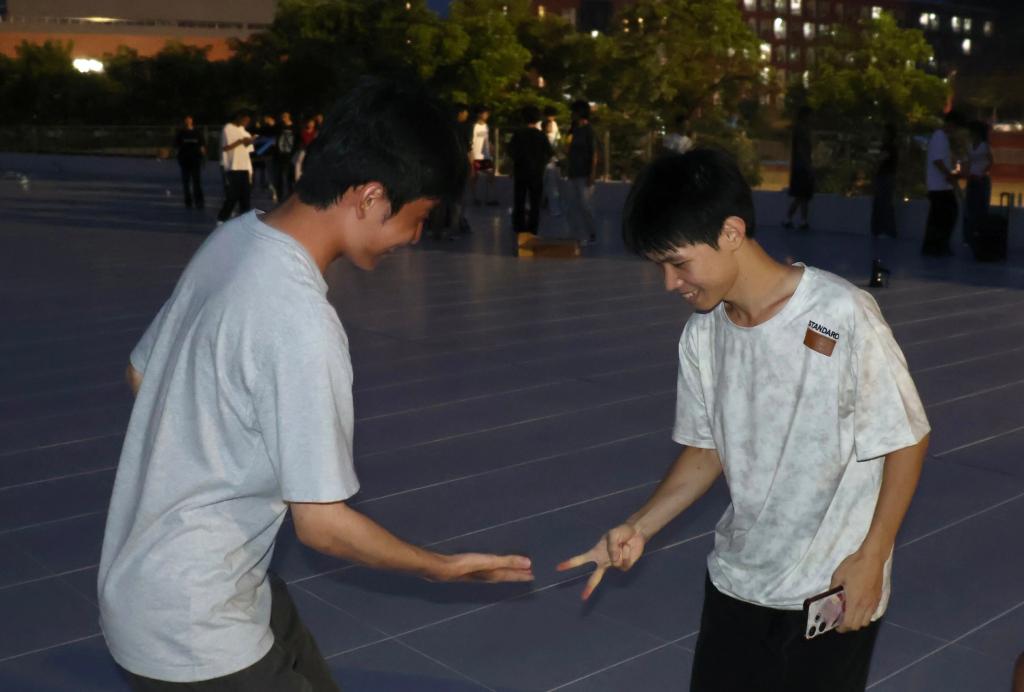 后续开展的 “推手游戏”,以极具巧思的设计将抽象的人际冲突,转化为可触可感的物理互动体验。游戏以两人为一组,双方掌心相对、稳稳相抵,在力量的暗自角力与骤然回撤间,同学们得以直观捕捉冲突中的典型情绪 —— 从对抗时的神经紧绷,到失衡瞬间的措手不及,再到意外撤力后的短暂错愕,每一种感受都真实可触。