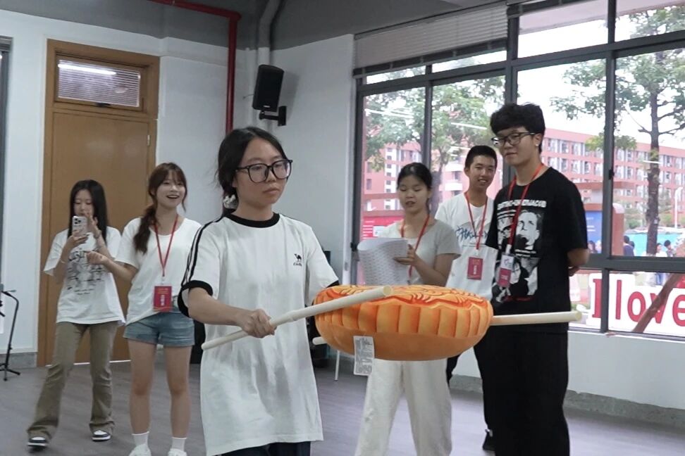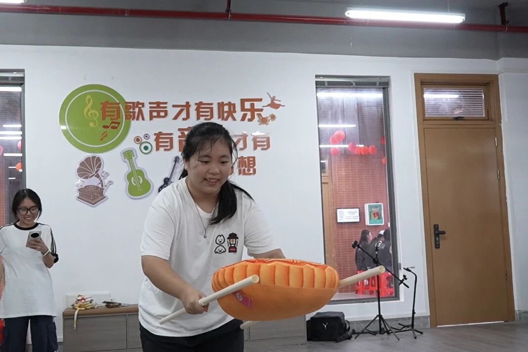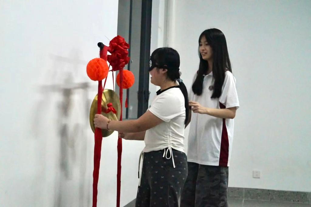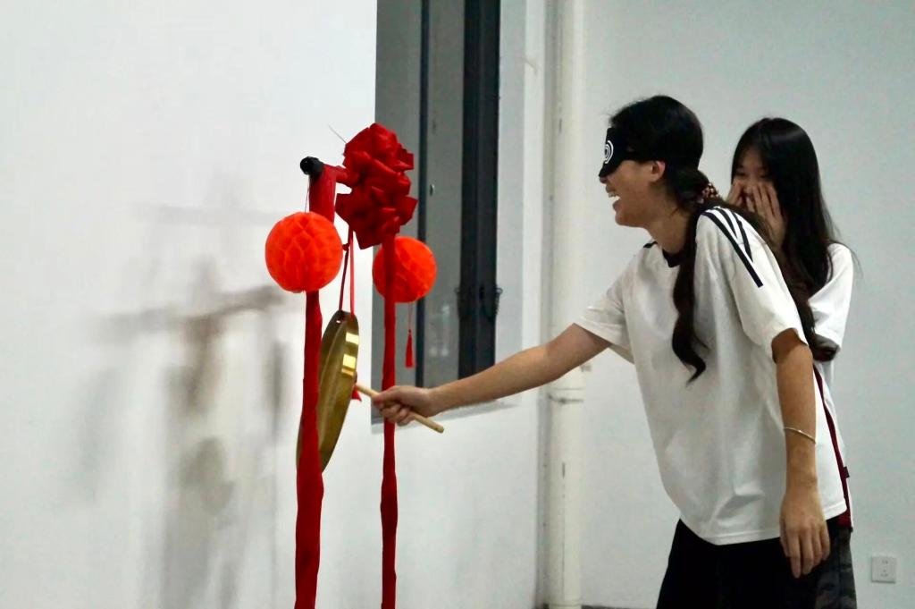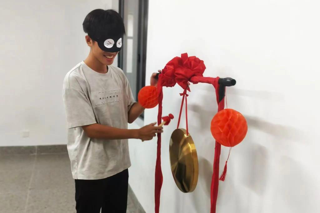 在启超书院的11c004室里,一场充满趣味性的击锣盛会。先蒙眼转三圈后再前行,摸索着敲响铜锣,那一声声清脆的“当”。不仅是游戏的胜利更象征着智慧与勇气的结合。同学们在欢声笑语中体验着挑战与合作,而每一次锣声的响起,都是对同学们精准判断与果敢行动的肯定。