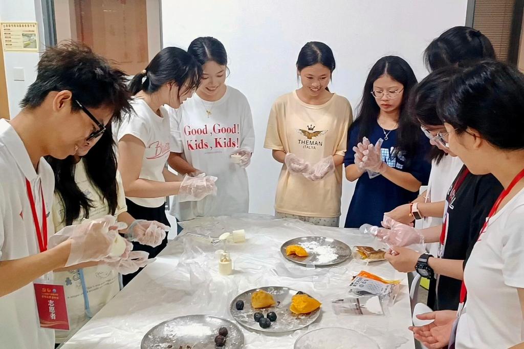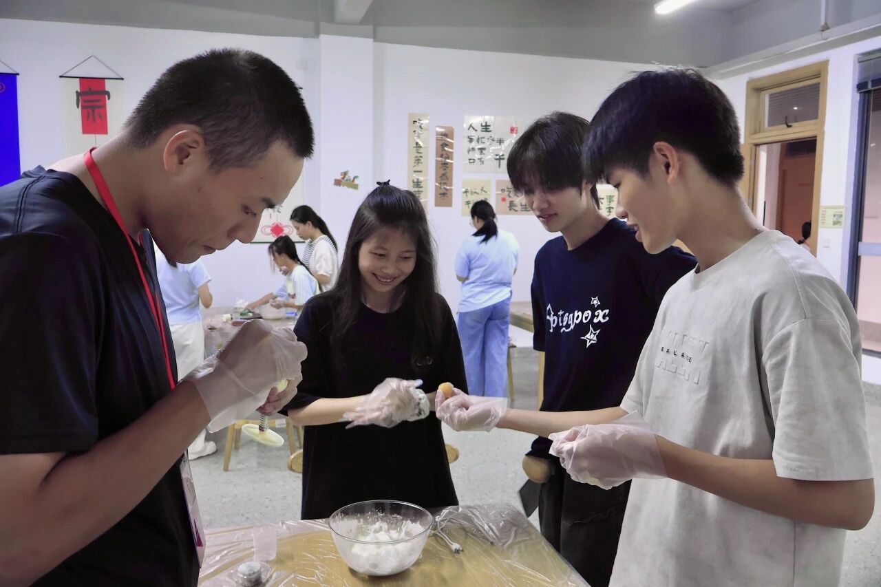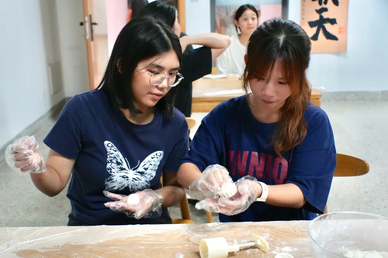 在工作人员的指引下,老师和同学们如同归家的游子一般围坐一堂,开启了一场充满温情的DIY月饼之旅。大家专注地揉面,那细腻的触感似家中老棉被的轻柔,每一次揉捏都仿佛在与家的温暖相拥。包馅之时,豆沙的甜糯、莲蓉的细腻、五仁的丰富,各种馅料宛如家中不同的宝藏记忆。拿起圆形模具,轻轻压模,模具上不同的字样。每一个字都承载着我们对家最炽热的期盼。书院里,欢声笑语与月饼的香气交织,如同家的温暖旋律。这DIY月饼的过程让我们在书院中寻到了家的感觉。这不仅仅是月饼的DIY更是家与文化的美好邂逅,是家的情感在书院中的诗意绽放。