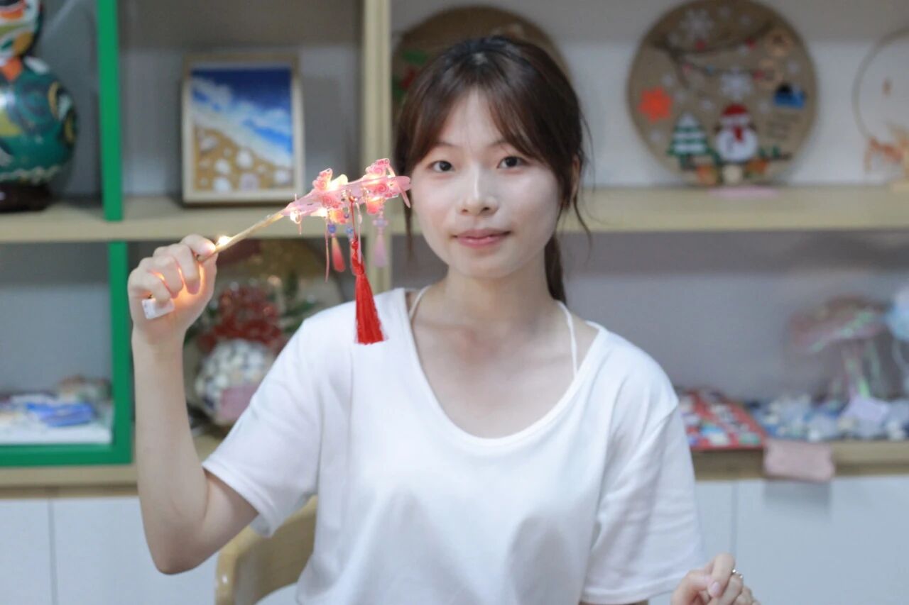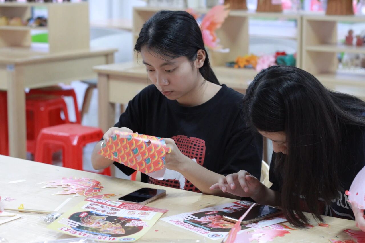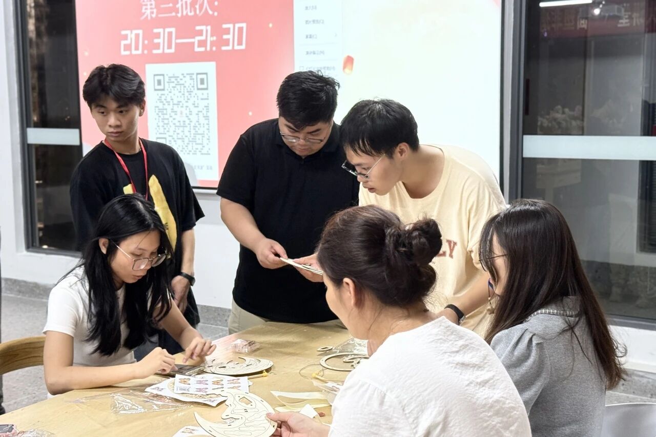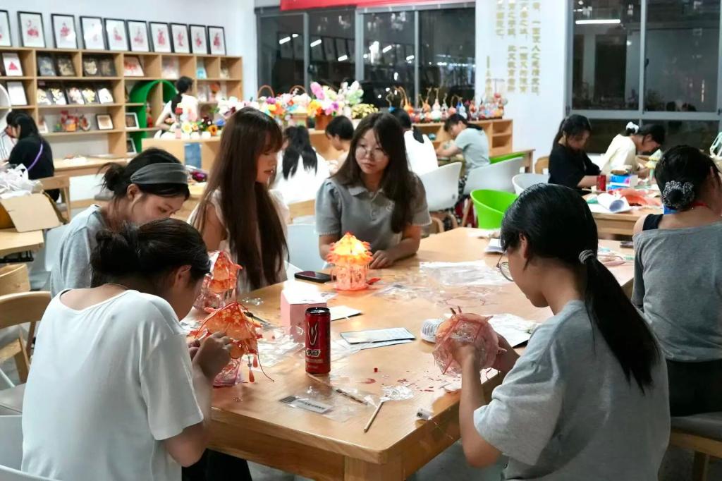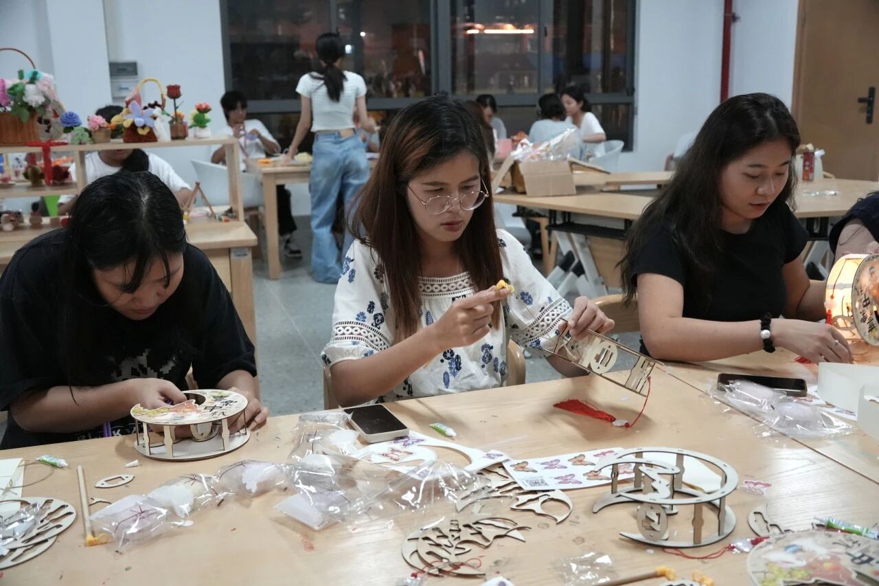 在启超书院的11D009室里,一场独具匠心的DIY花灯活动。由工作人员现场示范花灯的制作步骤后同学们纷纷上手实践并在交流中完成自己的作品。一盏盏形态各异、色彩斑斓的花灯不仅仅展现了参与者的巧思与匠心,也点亮了传统文化传承的火花。