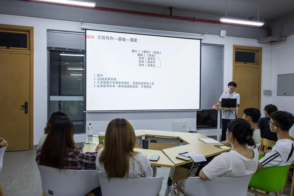 培训内容涵盖面广、针对性强。新干事们系统学习了从选题构思到文稿架构的撰写方法,排版中字体字号、段落间距和多样元素的合理运用技巧,以及摄影中的对称构图与光线角度运用,特别是在人物拍摄中通过交流捕捉生动瞬间的方法。这些知识为今后的宣传工作提供了实用指导。