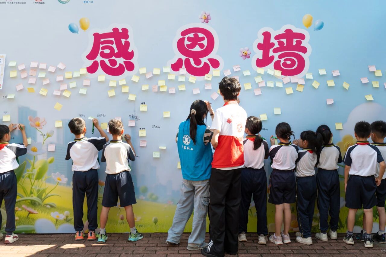 志愿者们布置了一面“感恩墙”,鼓励孩子们写下心里话。有的孩子写“谢谢妈妈”,有的写“谢谢志愿者哥哥姐姐”。志愿者在一旁默默陪伴,递上笔、轻声鼓励,让感恩的种子在孩子们心中悄悄发芽。