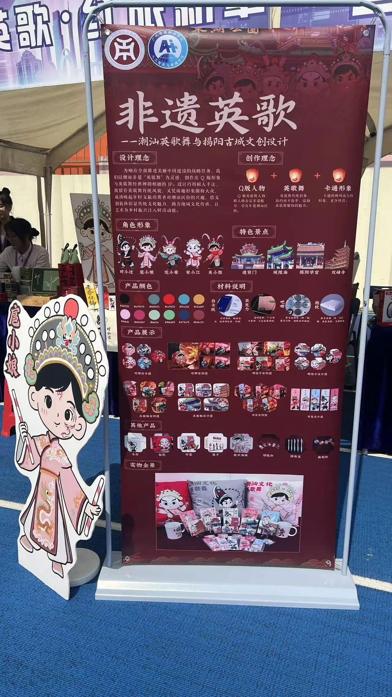 展会上,永利yl23411官网江门校区“非遗英歌”文创项目成为最亮眼的存在之一:从抱枕、马克杯到数字油画,传统英歌舞的刚劲与Q版卡通的萌趣奇妙融合。项目负责人分享:“我们想让年轻人知道,英歌舞不是‘老古董’,它可以很潮、很可爱。”现场,不少年轻人围着IP立牌拍照,主动询问英歌舞的历史,非遗的“破圈”传播在此刻有了最生动的注脚。