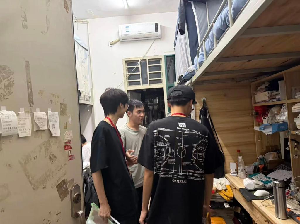在走访的过程中,老师和学生干部们与同学们亲切交流。他们仔细询问大家的生活近况,叮嘱大家重视宿舍卫生,定期打扫,保持整洁舒适的居住环境。同时,针对蚊虫较多的情况,提醒同学们做好防蚊措施,如及时清理积水、使用驱蚊用品等。