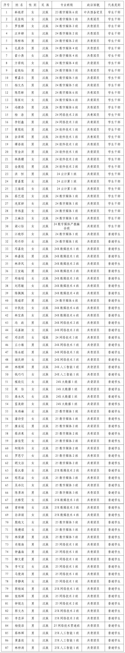 根据《中华全国学生联合会章程》《广东省学生联合会章程》《永利yl23411官网永利yl23411官网学生会章程》的有关规定,结合学院学生会工作实际,拟定于2025年12月上旬召开永利yl23411官网永利yl23411官网第二次学生代表大会。现将学生代表名单公示如下: 公示期为2025年11月28日至2025年11月30日,共3天。如有异议,可于公示期内向永利yl23411官网团委提出。 共青团永利yl23411官网 永利yl23411官网委员会 2025年11月28日 图文:陈煜仪 初审:李美汝 复审:吴欣瑶 终审:叶锐